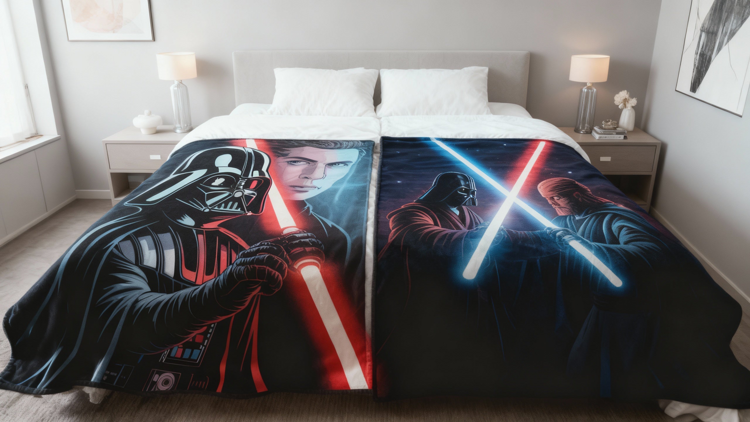 “Bought the Hope Blanket – Shadows of Vader as a gift and ended up keeping it 😅 The weave is tight, no loose threads, and it doubles as a wall tapestry for our movie room. Professional quality.”
